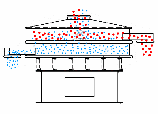 不銹鋼振動(dòng)篩由直立式振動(dòng)電機(jī)作為激振源,電機(jī)上、下兩端安裝有偏心重錘,將電機(jī)的旋轉(zhuǎn)運(yùn)動(dòng)轉(zhuǎn)變?yōu)樗?、垂直、傾斜的三次元運(yùn)動(dòng),再把這個(gè)運(yùn)動(dòng)傳遞給篩面,使篩面上的物料一起運(yùn)動(dòng),小于篩面孔徑的物料通過(guò)篩孔落到下層,大于篩面孔徑的物料從排料口排出,終完成篩分工作。在實(shí)際運(yùn)行過(guò)程中,還可以通過(guò)調(diào)節(jié)上、下兩端的相位角,改變物料在篩面上的運(yùn)動(dòng)軌跡,從而達(dá)到不同篩分目的。