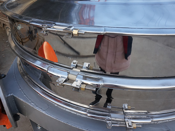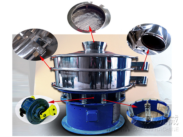 超聲波振動篩由超聲波發生器、換能器、共振環組成。超聲波發生器產生高頻震蕩,由換能器轉換成高頻正弦形式的縱向震蕩波,這個震蕩波傳到共振環上使共振環產生共振,然后由共振環將振動均勻的傳輸至篩面,篩網上的物料在做低頻三次元振動的同時,疊加上超聲波振動,既可防止網孔堵塞,又可提高篩分產量和質量。