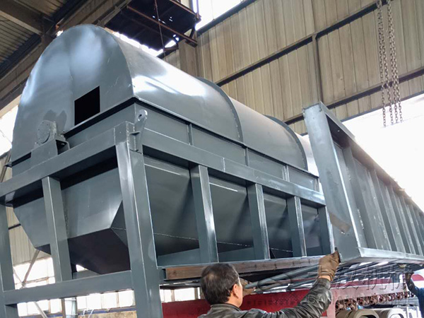 我公司研制的回轉篩進料口可根據現場實際設計,無論是皮帶、漏斗或其它進料方式,不用采取特殊措施,都可以順暢進料;
