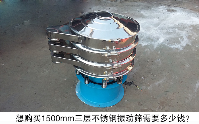 不銹鋼振動篩整機采用SUS304不銹鋼材質,主要用于食品、醫藥等對衛生要求較高的行業,不銹鋼振動篩有層數與型號之分,用戶想購買1500mm三層不銹鋼振動篩,一般需要多少錢呢?大漢廠家在這里告訴大家,一臺1500mm三層不銹鋼振動篩價格在13000元之間,一次多臺選購另有更多優惠。