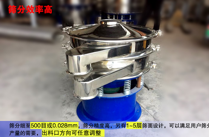 一臺(tái)設(shè)備都是講求效率的,大漢300mm型不銹鋼振動(dòng)篩篩分細(xì)至500目或0.028mm,篩分精度高,另有1~5層篩面設(shè)計(jì),可以滿足用戶篩分產(chǎn)量的需要,出料口方向可任意調(diào)整,粗、細(xì)料自動(dòng)排出,可自動(dòng)化或人工作業(yè),產(chǎn)量大。