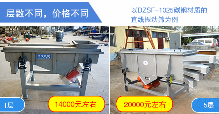 直線振動篩每相差一個型號,其價格就會升高1000-2000元,除此以外,其價格還是設備材質,層數的影響,主要分析如下: