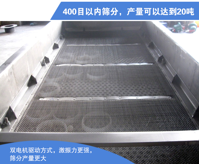 不銹鋼直線振動篩可以將蠶豆篩分至400目,篩分效率可以達到96%以上,另外,還可以通過加裝硅膠材質的彈跳球來達到清網的目的,雙電機驅動方式,激振力更強,篩分產量更大,一般情況下,大漢不銹鋼直線振動篩一小時可處理0.12-20噸的物料,具體產量依據用戶實際選型。