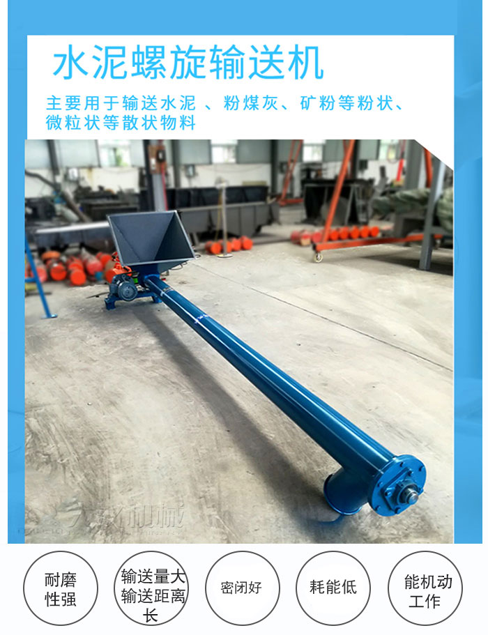 水泥螺旋輸送機是一種封閉管內利用旋轉連續螺旋葉片帶推送物料的輸送機械,主要用于輸送水泥 、粉煤灰、礦粉等粉狀、微粒狀等散狀物料,不宜輸送粘性大、易結塊、纖維等原料,可以按照用戶輸送現場情況分為水平、傾斜及垂直方向的輸送,常用于水泥攪拌站中。