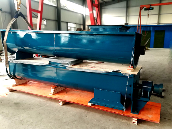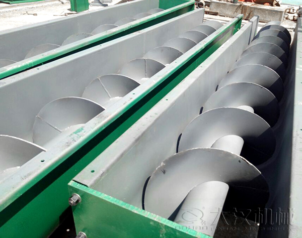 物料從進料口加入,當轉軸轉動時,旋轉的螺旋葉片將物料推移而進行輸送,但由于物料本身的重力和料槽對物料的摩擦力的緣故,才不與螺旋葉片一起旋轉,在由螺旋軸的拖動下,物料往出料口方向移動,將物料輸送到料倉或料池中。